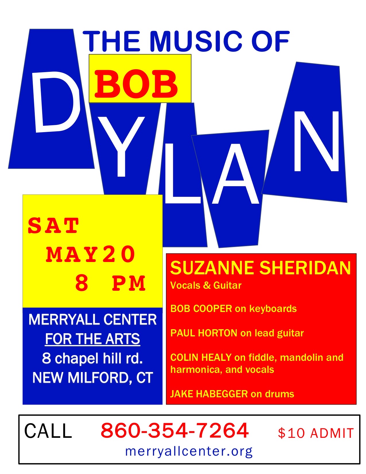 The musicians that are gathering to play the music of America’s most notable and only Nobel Prize-winning singer/songwriter Bob Dylan will be Suzanne Sheridan on vocals and guitar, Bob Cooper on keyboards, Paul Horton on lead guitar, Jake Habegger on drums, and Colin Healy on mandolin, harmonica, fiddle, and vocals. All world-class musicians in their own right, they have come together to bring you their version of Dylan’s music in a fashion that you will be sure to claim is the best you have ever heard. A musical must!!
