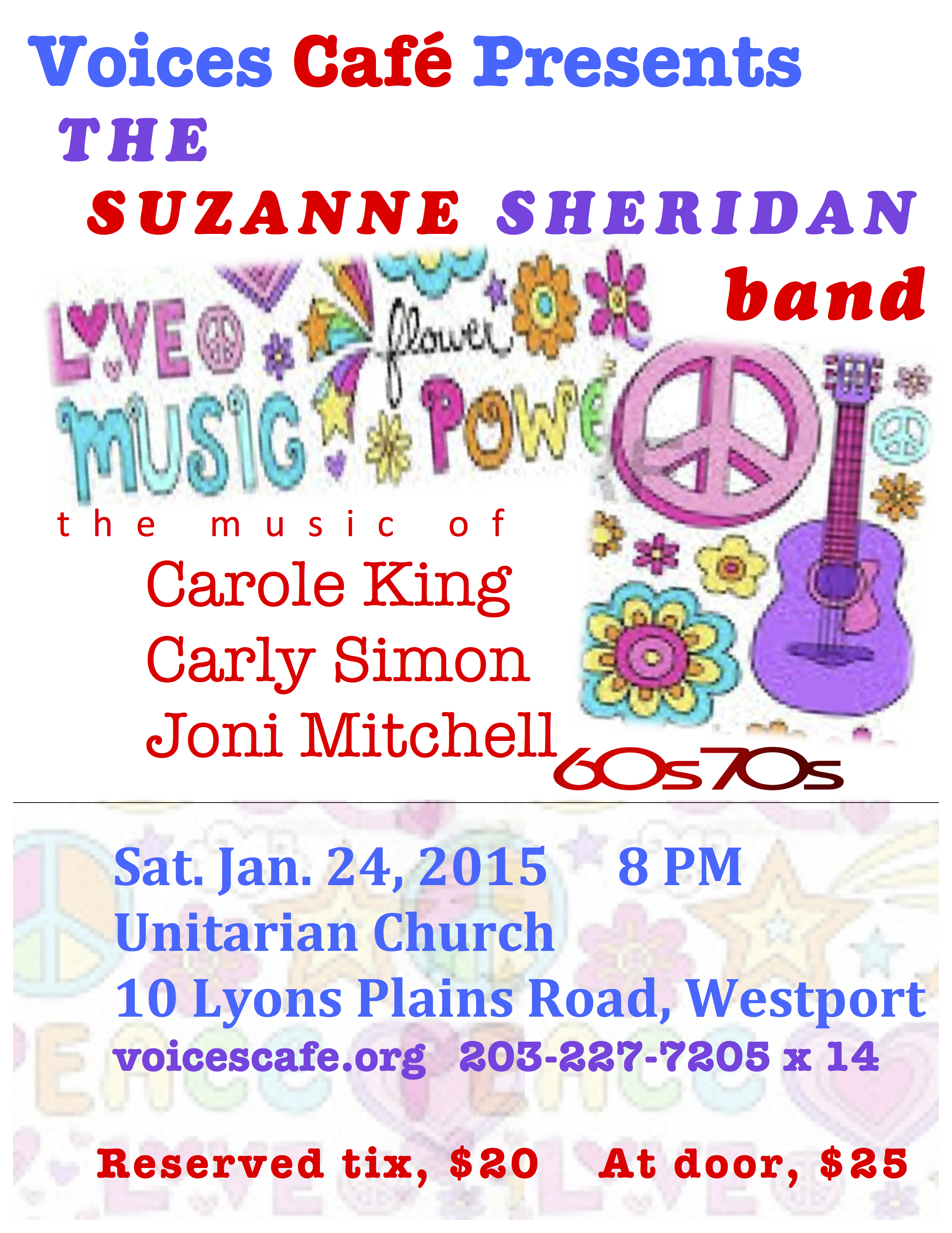 THE SUZANNE SHERIDAN BAND at VOICES CAFE on SATURDAY DEC. 9, 2017 at the Unitarian Church in Westport,